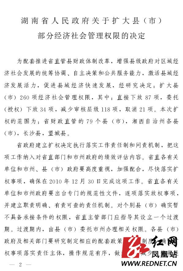 湖南省人民政府关于扩大县(市)部分经济社会管理权限的决定