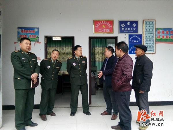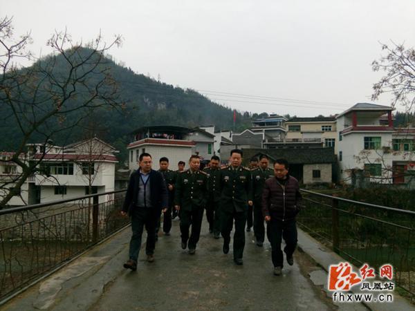 红网凤凰县分站3月6日讯(通讯员 吴旭朝)3月3日,吉首军分区政治部主任贺建军一行,深入凤凰县筸子坪镇调研精准扶贫工作。凤凰县县委常委、县人武部政委吴仁铁,筸子坪镇党委书记田峰,镇人民政府镇长邢凤华陪同调研。