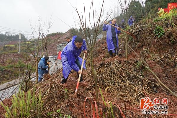 上午9时,大家迎着淅淅沥沥的春雨来到植树点,换上雨靴,穿上雨衣,拿起铁锹,和在场的志愿者、干部、群众一起,共同栽下樟树、紫薇、桂花树等一棵棵观赏、绿化树种。挖坑、扶树、填埋、培土、踩实……在大家的共同努力下,不到两个小时,500多棵紫薇、桂花树、樟树就扎根在县城北游客服务中心后山坡,形成一道靓丽的风景线。