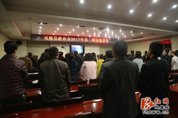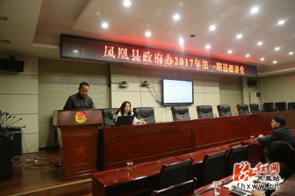 红网凤凰县分站3月17日讯(特约记者 吴金显 通讯员 吴志美)3月17日下午,凤凰县政府办举办2017年第一期主题为“学习雷锋,做有道德的人”的道德讲堂,讲堂由县政工办副主任吴志美主持,该办全体干部职工参加讲堂。