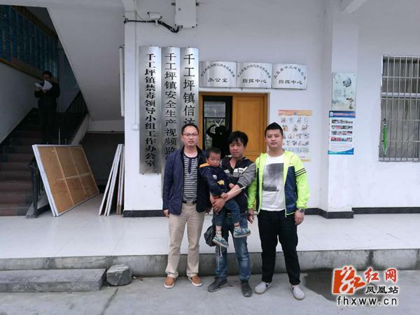 千工坪镇网格办工作人员与小孩父亲合影留念。