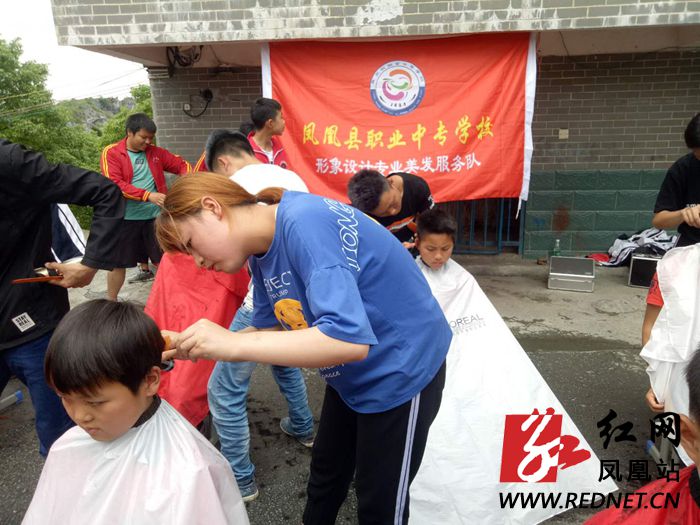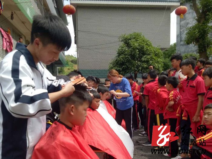 红网凤凰县分站5月14日讯(通讯员 王徽)5月12日,凤凰县职业中专学校形象设计专业美发服务队师生10人走进吉信育英武校,为武校学生提供了理发服务。