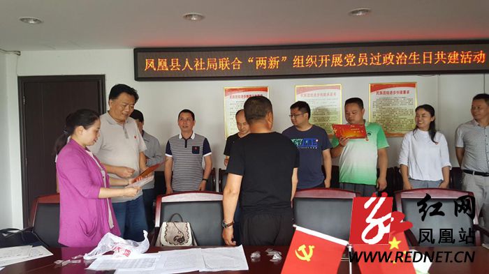 红网凤凰县分站5月24日讯(通讯员 龙彦利 韩辉)5月23日上午,凤凰县人社局联合“两新”组织在该局六楼会议室开展党员过政治生日共建活动。“两新”组织代表阿菊家政党支部党员、过政治生日的10余名人社党员干部等参加了该次活动。