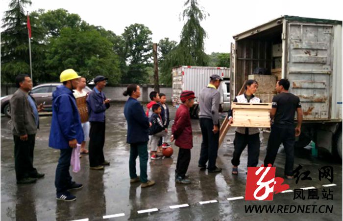 红网凤凰县分站5月25日讯(通讯员 张长科 张现发)5月23日,凤凰县千工坪镇关田山村、胜花村,腊尔山镇得贺村,禾库镇夯来村共40户贫困户先后领取了由中石化免费发放的“扶贫蜂”,同日一起领取的还有山江镇板畔合作社,总计一百箱。