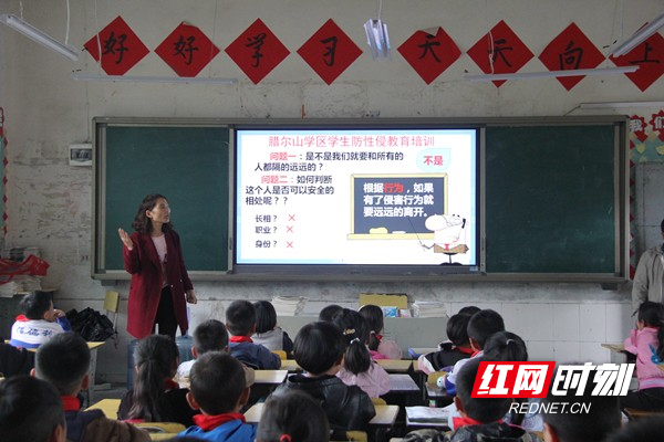 红网凤凰县分站9月17日讯(通讯员 吴玮)“我们必须把保护学生的生命安全和促进学生的身心健康放在工作的首位”。9月16日中午,凤凰县教育和体育局副局长龙敏深入腊尔山学区“防性侵”安全教育课堂,聆听基层教师为学生讲授“新课”,全校26个教学班利用当日下午班会课,统一在班级开展“预防性侵”安全教育。在课后与学生的交谈中,学生能清晰说出“防性侵”安全教育知识要点,并表示最大的收获是知道了懂得了什么是性侵,面临侵害不能沉默,要勇敢拒绝。