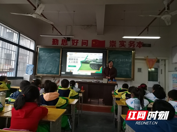 活动以班级为单位,以主题班会为载体,通过多媒体展示和教师深入浅出的解读把国家安全观传播到每名学生心中,使他们从小树立爱国、爱校、爱家、爱社会的高尚情操。