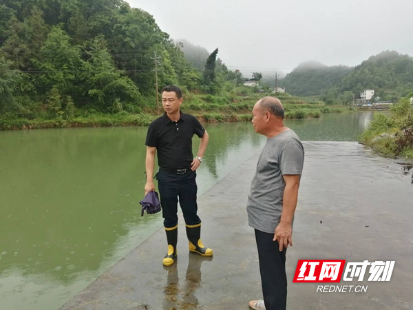 镇党委副书记杨刚在瓦坪村巡查水库。