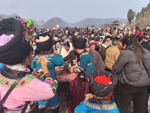 压轴的杀年猪宴更是将氛围推向高潮,乡亲们将宰好的猪肉炒成一道道美味佳肴,地道的苗族特色美食香气四溢,游客们与当地村民围坐一堂共享盛宴,在味蕾的满足中感受苗族群众的热情好客与团圆温情。