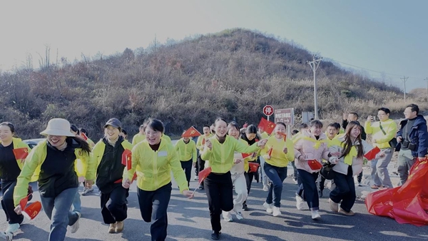 红石林山顶上,天空格外湛蓝,完成越野赛的全体职工们挥舞着国旗合影留念,尽情享受登顶的喜悦,饱览大自然的壮阔风光。在登山途中亲近自然、释放压力,在文体竞赛中增进团结、锤炼意志。此次活动既丰富了干部职工业余文化生活,更有效凝聚了团队向心力。“户外越野+体育竞技的活动安排太棒了,运动量达标了,精气神也提上来了,新的一年工作更有干劲了!”青年干部贺坤鹏的话语道出了大家的心声,“快乐生活、认真工作”的理念也在活动中更加深入人心。