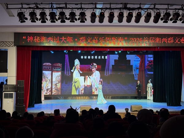 凤凰新闻网1月27日讯(通讯员 张克柔)春潮涌动湘西地,凤声嘹亮贺新春。1月26日,由湘西州群众艺术馆主办的“2026年首届湘西群文春晚”在群星艺术剧场隆重上演,作为凤凰县群众文化的中坚力量,凤凰县文化馆精心选送的节目《去凤凰》惊艳亮相,以婉转悠扬的旋律、饱含深情的演绎,将沱江的灵秀、古城的韵味与湘西人民的热情娓娓道来,赢得现场观众阵阵掌声与广泛赞誉。
