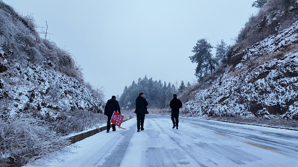 从严抓管控,以“冷脸”换群众“暖心”。20日晚,G352两林路段结冰严重,两林乡党委、政府果断决策,对两林农垦社区至凉井路段、实施封闭管控,在路段两端设置“雨雪天气,禁止通行”警示牌,并设置硬隔离,派人轮班值守。面对个别村民的不理解,值守队员坚守原则、耐心劝导,以“冷脸”守牢安全底线,用实际行动践行“生命至上、安全至上”的庄严承诺。