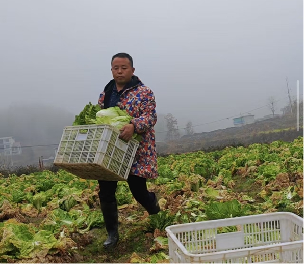 收完辣椒,为了让跟着他的乡亲们一年四季都有收入,他又带领乡亲们种植了红菜苔126.8亩、大白菜106.6亩。红菜苔每亩产量约 2500斤,目前平均每斤可以卖1.6元,仅此一项就能实现产值 507200元;大白菜每亩产量约 6000斤,平均每斤0.7元,产值可达 447720元。两项秋冬蔬菜合计产值近 95.5万元。这些新鲜蔬菜都销售给了湘西州内、长沙、上海、深圳、江西、福建等地收购辣椒的老客户,稳定的销路让乡亲们心里的石头落了地。看着裹得紧实的大白菜青翠喜人,长得正旺的红菜苔艳红透亮,田间地头全是采收的身影,指尖划过菜叶的沙沙声,混着乡亲们的闲聊和笑声,浓浓的烟火气就这么悄悄揉进了风里。