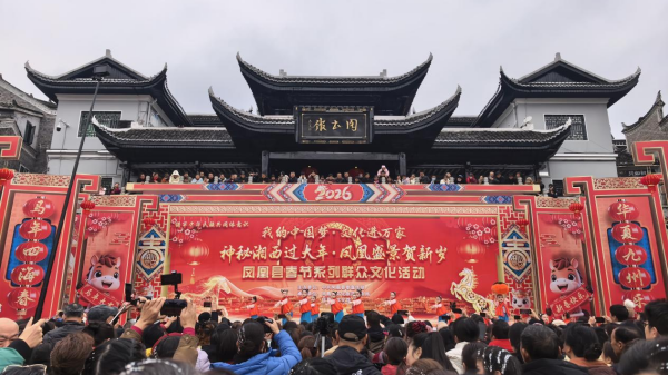 凤凰新闻网2月19日讯(通讯员 张克柔)新春伊始,年味正浓。2026年农历正月初一至初二,由凤凰县委宣传部、凤凰县文化旅游广电局主办,凤凰县文化馆承办的“神秘湘西过大年·凤凰盛景贺新岁”春节系列群众文化活动,以非遗展演、民俗巡游、互动体验、光影夜游等多元内容,为广大市民与游客献上一场兼具民族特色与新春喜庆的文化盛宴。截至正月初二,系列活动累计吸引观看人次达20余万人次,全县文旅市场迎来新春“开门红”。