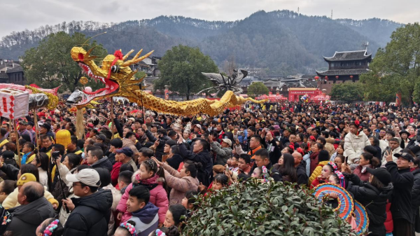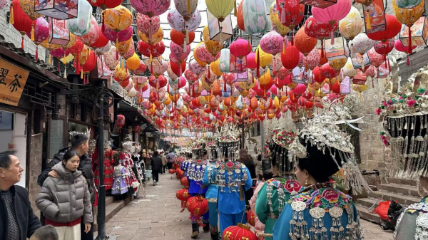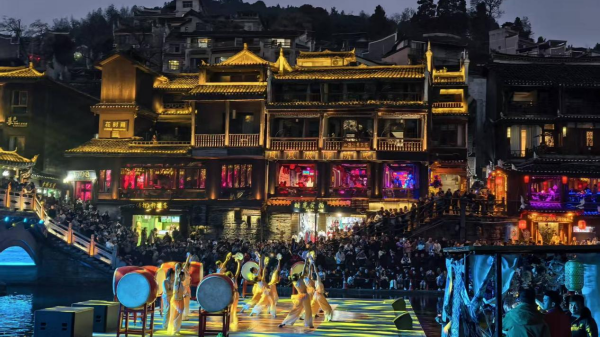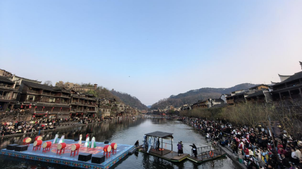 雪桥河上舞台,“鼓韵南北 凤凰和鸣”武陵山片区鼓王争霸赛、狮舞山河·春耀古城、南北和鸣·沱江飞歌新春乐章等精彩节目,为观众带来了震撼的视听享受;南边街的“凤舞南边·春满古城”新春喜乐汇,以及凤凰古城、南华山、麻冲乡竹山村推出的“凤凰爱·苗家有喜”沉浸式婚恋文化体验活动,让游客深度参与其中,沉浸式感受凤凰独特的文化魅力。