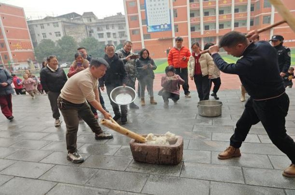 凤凰新闻网2月10日讯(通讯员 龙家勇)2月6日,凤凰县沱江镇新田垅社区在箭道坪小学校园内举办以“社校联动,共迎新春”为主题的迎新春活动。活动现场免费提供糯米、糍粑模具、春联纸等物资,师生志愿者、社区居民齐聚一堂,以打糍粑、送糍粑、写春联、送春联的传统民俗形式,共话新春、共传文脉,让传统年俗文化在社区和校园里落地生根。同时为落实烟花爆竹燃放安全管理,切实控制因烟花爆竹燃放造成的环境污染,消除火灾隐患,保障人民群众生命财产安全,还向参与活动的居民发放禁放烟花爆竹的宣传单。