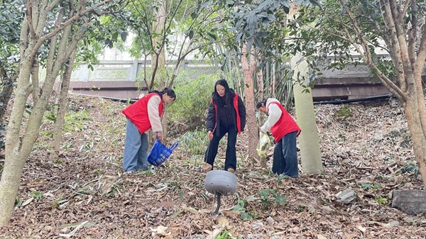 现场,社区党支部负责人率先垂范,带领工作人员携带扫帚、铁铲、垃圾袋等工具,分工协作、干劲十足。有的细致捡拾江边绿化带内的塑料袋、纸屑、烟头及枯枝败叶等各类生活垃圾,不放过任何一处细小杂物;有的负责分类收纳、集中清运,将清理后的垃圾有序装入垃圾袋,及时转运至指定收集点,全程有条不紊,清理江边环境乱象,恢复江边整洁有序风貌,助力景区环境提质。