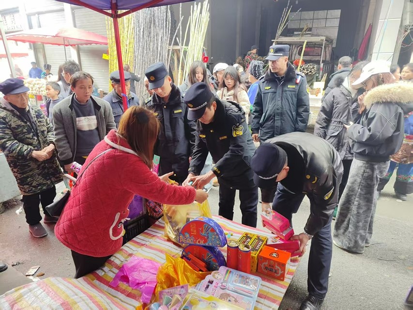 过年烟花爆竹是重头戏,但安全这根弦,松不得。执法人员走遍集镇及周边所有烟花爆竹零售点,逐一核对许可证是否到期、储存量是否符合要求、消防设施是否完备。对不符合规定的,当场指出、现场整改;对藏在角落里的无证经营点,坚决取缔,不留盲区。在一家杂货铺,店主把鞭炮堆在角落。执法人员没有急着开单,而是搬了张凳子坐下,打开手机翻出几起农村烟花爆竹事故的新闻,一条一条讲:“不是要为难你,卖炮仗要凭良心,安全是头一条。”