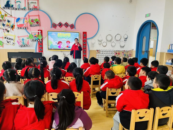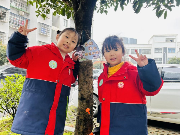 活动中,各班通过趣味科普开启护绿第一课。大班幼儿化身“种植小能手”,在种植区扶苗、填土、浇水,动作专注且有序,在协作中完成“安家”任务,并挂上祝福卡片,许下与小树共成长的约定。中班孩子开启“树木探秘之旅”,用放大镜观察树叶纹理、树皮形态,以绘画记录自然发现,尽显童真好奇心。小班宝贝们则开展浇水、认养活动,提着水壶有序浇灌,认领专属小树并许下照料承诺,可爱模样传递纯真关爱。