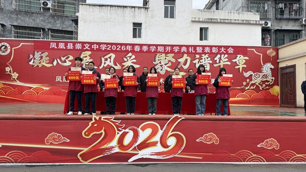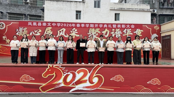 凤凰新闻网3月5日讯(通讯员 石中霞 龙玉昪)春风送暖启新程,凝心聚力向未来。3月5日上午,凤凰县崇文中学在学校足球场隆重举行2026年春季学期开学典礼暨表彰大会,全体师生以龙马精神齐聚校园,共启新学期、同赴新征程。