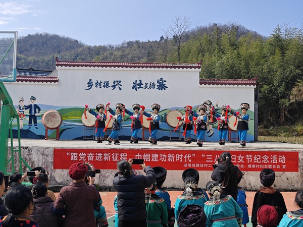 凤凰新闻网3月5日讯(通讯员 吴东林 罗畅)春风拂面暖苗寨,巾帼欢歌庆佳节。3月4日,湖南城建职业技术学院驻凤凰县吉信镇塘寨村工作队,以“跟党奋进新征程,巾帼建功新时代”为主题,精心举办庆祝“三八”国际妇女节活动,为全村苗族妇女搭建展示风采、绽放魅力的广阔平台,让巾帼芳华在乡村振兴一线尽情闪耀。