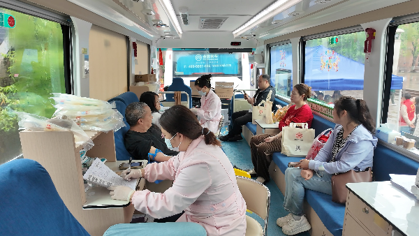 流动献血车前人潮涌动
