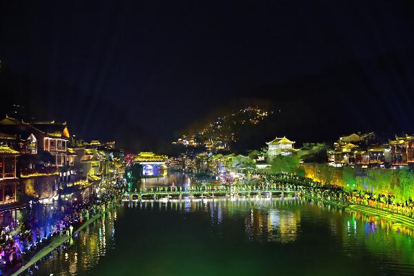 凤凰古城旅游区为国家5A级旅游景区。沱江绕城流淌,两岸吊脚楼依水而建,青石板街巷纵横交错,人文底蕴深厚。城内保留多处名人故居与传统建筑,沈从文故居、熊希龄故居、杨家祠堂、虹桥、沱江跳岩皆是标志性景观。白日可漫步古街,感受民俗风情;入夜灯火映江,意境尤为动人。
