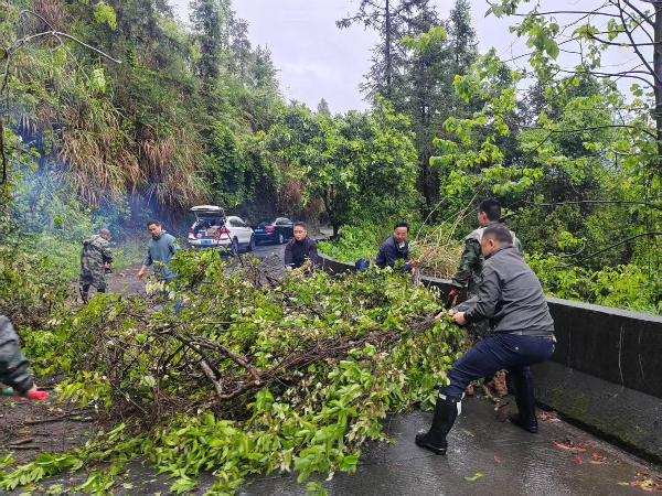 防汛抢险清理倒伏树木现场