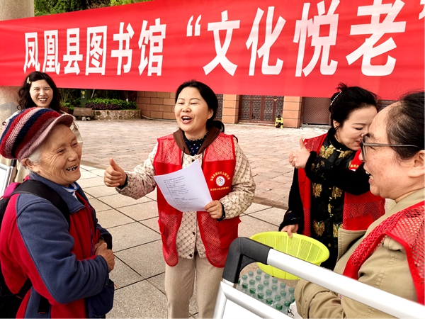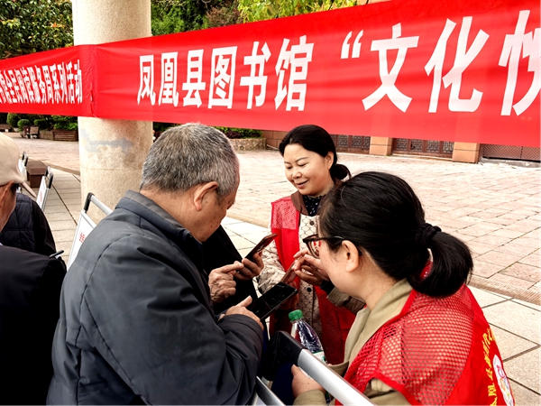 凤凰新闻网4月24日讯(通讯员 吴香花)为精准服务老年群体,助力老年人跨越数字鸿沟,享受智慧生活。4月23日,凤凰县图书馆将服务阵地延伸至县城文化广场,开展了一场以“文化悦老”为主题的志愿服务活动,让数字时代的温暖照亮银发生活,吸引了众多老年朋友积极参与。