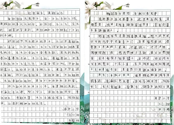 同学们笔墨抒怀、以文寄情,结合读书感悟与内心所思,认真撰写征文。稚嫩质朴的文字里,饱含着对苗乡英烈的崇高敬意,诉说着对红色精神的理解与感悟,充分展现了南华学子铭记历史、勤学奋进、热爱家乡、心怀家国的良好精神风貌。