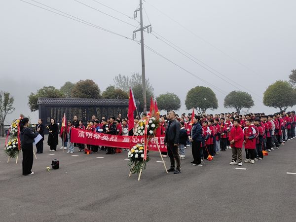 伴随着激昂的中华人民共和国国歌,祭扫仪式在庄严肃穆的氛围中正式拉开序幕。全体师生肃立致敬,党员教师代表缓步向烈士纪念碑敬献花篮,校领导整理花篮缎带,少先队员依次献上鲜花。现场,师生默哀三分钟、行三鞠躬礼,共同垂首追思,深切感念先烈抛头颅、洒热血的不朽功勋。随后,师生有序瞻仰烈士纪念碑与烈士墓区,驻足沉思,缅怀革命先烈的丰功伟绩。