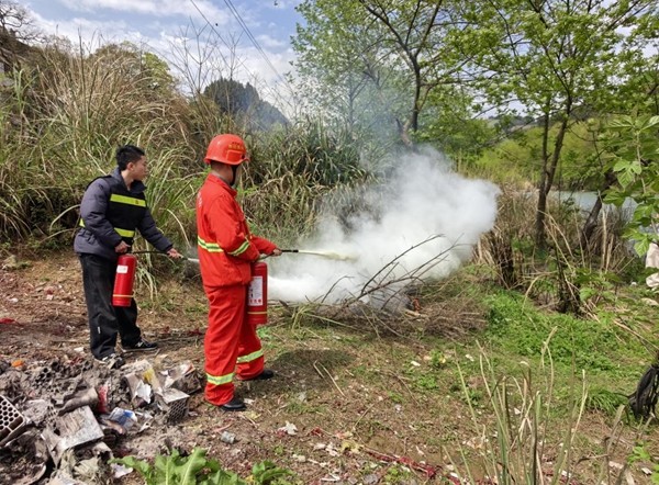 在森林防火演练环节,模拟辖区池坪村二组山林突发火情,火势快速蔓延,护林员第一时间发现并上报火情信息。乡应急指挥部接到火情报告后,迅速启动森林防火应急预案,应急分队快速集结,携带灭火拖把、消防水带、灭火器等装备赶赴现场,按照“打早、打小、打了”原则,分工协作、配合默契,快速开辟防火隔离带,精准开展扑火作业,短短数十分钟便成功将“火情”扑灭,同时完成火场清理和隐患排查,有效防止复燃。
