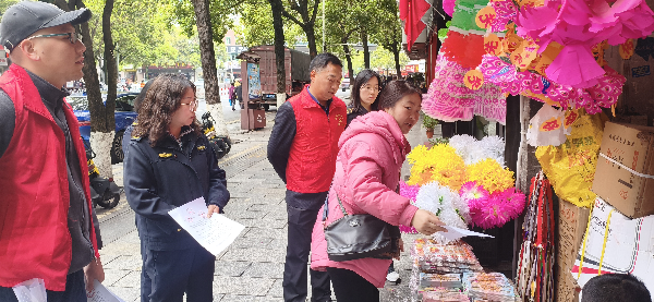 在虹桥路、凤凰路等人员密集路段,身着志愿服装的工作人员热情向前来咨询的市民发放《文明祭祀倡议书》,用通俗易懂的语言详细讲解文明祭祀、绿色祭祀的重要意义,重点强调祭扫期间严禁使用明火,安全祭祀的理念,耐心提醒群众合理安排祭扫时间、错峰出行,确保祭扫活动安全、顺畅、有序。同时,工作人员还深入辖区殡葬用品经营户,向经营者普及塑料祭祀用品的环境危害,发放清明期间文明祭扫倡议书,引导经营户自觉摒弃塑料祭祀用品,共同助力文明祭扫。此次活动累计发放《文明祭祀倡议书》420份。