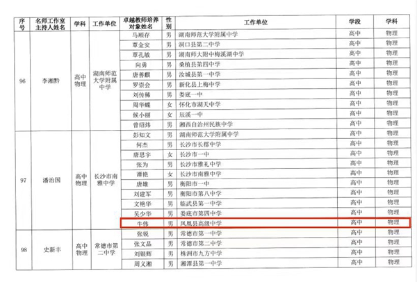凤凰新闻网7月24日讯(通讯员 苏胜平)近日,湖南省教育厅公布了《湖南省新时代基础教育卓越校长、教师培养对象(2023-2025)名单》,凤凰县高级中学副校长张波成功入选为湖南省卓越校长培养对象,教科室主任牛伟成功入选为湖南省卓越教师培养对象。