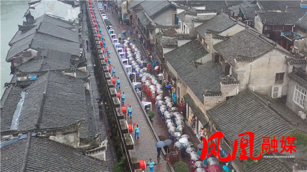 盛装巡游活动精彩纷呈,摄影民俗展同样精彩亮眼。在文化广场及凤凰古城各主要街道、沱江两岸,展出各类主题摄影展近4000幅优秀摄影作品,用镜头展现凤凰多彩的民俗风情,用作品见证凤凰乡村振兴的“山乡巨变”。