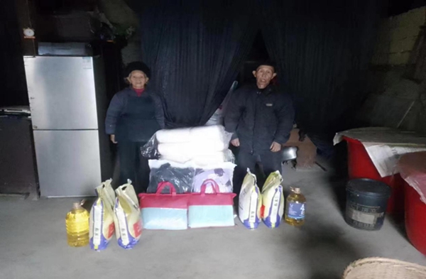 “麻大伯,这是国家给您二老的米、油、棉被、棉衣,我们给你们放在这里了。”山江镇古塘村村警胡省兵走进五保特困户麻大伯家中,放下慰问物资后说道。“哎——好的好的,太感谢你们了,快来坐着烤火!”麻大伯热情地邀请前来送慰问物资的两位村干部。两位村干部刚坐下不久,便听见老人发出断断续续的抽泣声。胡省兵连忙问道:“麻大伯,您怎么了,是有什么困难吗?”“没有困难,我太感动了啊,太感谢党和政府,让我们二老享受这么好的政策,衣食无忧的。”麻大伯一边说着,一边掩面而泣。像这样感人的场景是本次山江镇发放慰问物资的生动缩影之一。