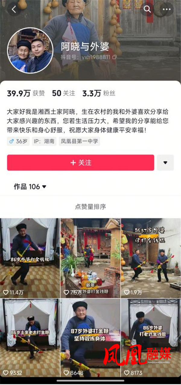 如今,“阿晓与外婆” 的抖音账号已成为展示湘西文化的一扇窗口,激励着越来越多的人关注非物质文化遗产的保护与传承。杨晓慧用实际行动诠释了年轻一代对传统文化的热爱,让“霸王鞭”这一非物质文化遗产重获生机。