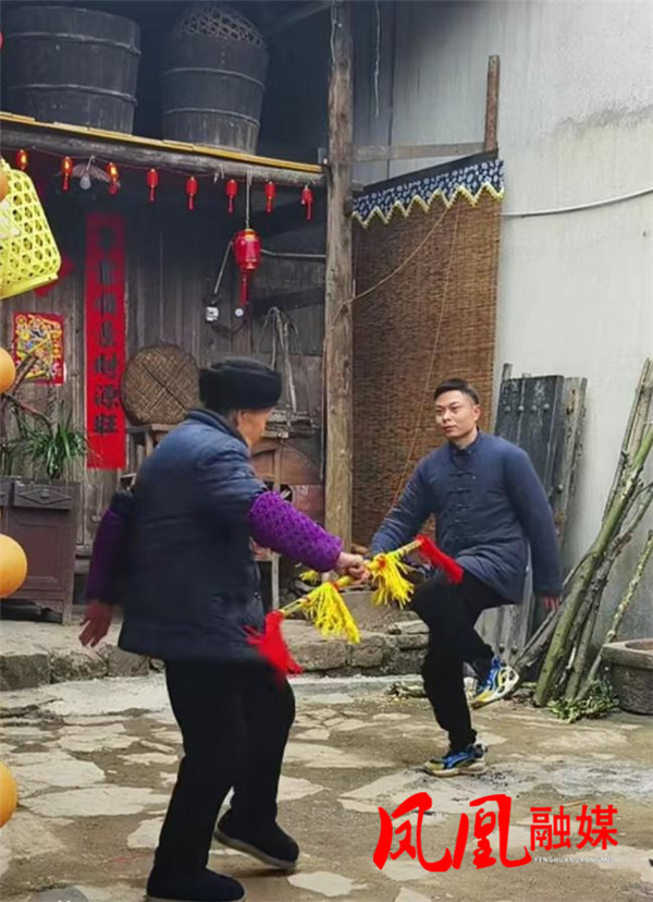 一次偶然,杨晓慧在村中闲逛,看到几位老人练习“霸王鞭”。金鞭翻飞,声响清脆,如金龙舞动,瞬间吸引了他。经了解,“霸王鞭”是湘西流传已久的非遗,承载丰富历史文化内涵与民族精神。不过,随着时代变迁,这项技艺逐渐被年轻人遗忘,面临失传风险。