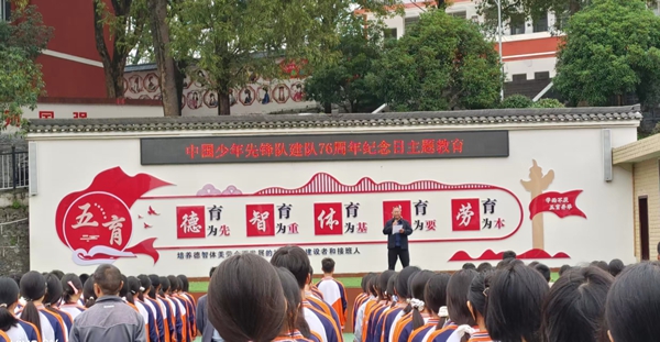 凤凰新闻网10月15日讯(通讯员 杨霞 唐儒君)为庆祝中国少年先锋队建队76周年,引导广大青少年厚植爱国情怀,增强青少年的责任感与使命感。10月14日上午,凤凰县廖家桥学区石化中学以“强国复兴有我 争当新时代好少年”为主题,开展爱国主义教育实践活动,传承红色基因。