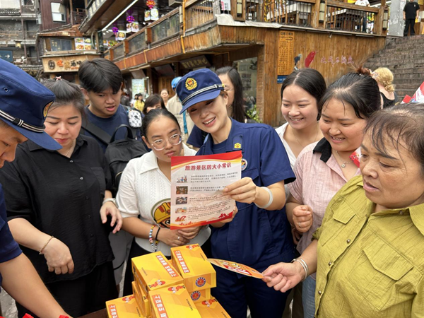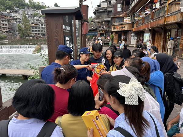 凤凰县消防救援大队负责人表示:“双节期间,我们将持续加大景区消防巡查力度,通过‘摆摊+巡防+排查’的方式,全面提升全民消防安全意识,为游客营造一个安全、祥和的节日环境。”