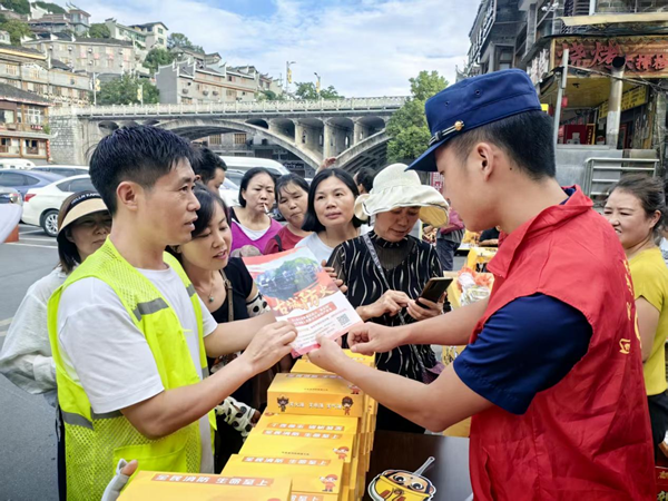活动现场,消防宣传员搭建起醒目的宣传摊位,摆放消防手册、主题礼品等物品,吸引大量游客驻足参与。宣传员结合古城木质建筑多、商铺密集的特点,用通俗易懂的语言向商户、游客讲解“古城景区防火”、“三清三关”等知识,并提醒游客入住时留意疏散通道位置。“如果遇到火灾,一定要用湿毛巾捂住口鼻,弯腰低姿沿安全出口撤离。”宣传员一边发放消防主题小礼品,一边向游客普及逃生技巧。一位来自四川的游客表示:“这种宣传方式既有趣又实用,我会把学到的知识带回家,提醒家人注意防火。"