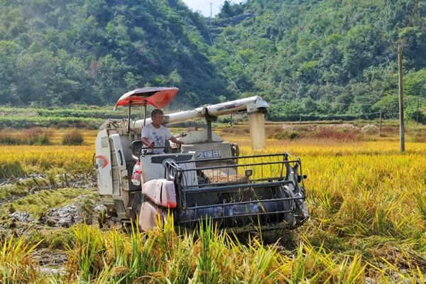 “以前人工收割一亩地,一个壮劳力得埋头干三天,现在收割机开过去,一个小时就能收完一亩多,机器不仅效率高,还降低了人工成本,真是省心又省力。”高塘村党支部书记吴元香表示。