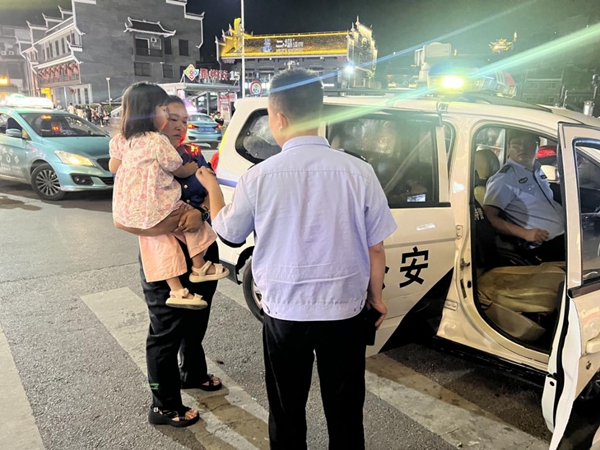 凤凰新闻网10月4日讯(通讯员   田忆)“小朋友别害怕,叔叔阿姨会一直陪着你,咱们一定能找到爸爸妈妈。”10 月 2 日 22 时 30 分许,凤凰县永丰楼邮电局附近,城南大队队员黄明禹、向保珠轻声安抚着哭泣的小女孩,夜色中,一场温暖的寻亲守护悄然展开。