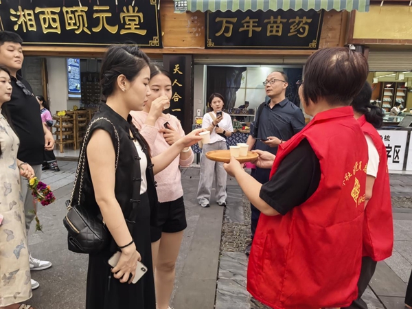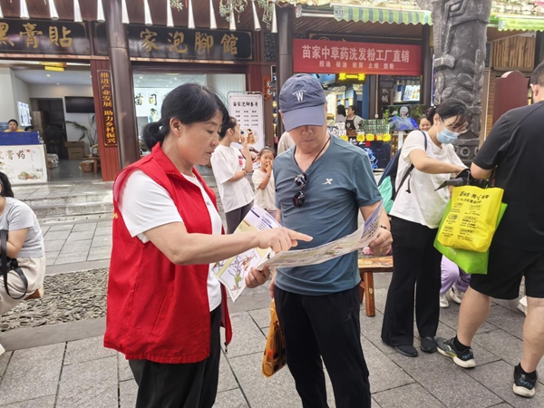 当好“旅游咨询员”,让游玩更省心。为帮助游客更好感受辖区特色,社区党支部组织“三长”志愿者化身“旅游向导”,在云桥、农家船码头、沿河风景带、翠翠街等景点周边设立志愿服务岗,为游客提供全方位咨询服务。“三长”们提前熟悉辖区景点历史文化、特色美食、游玩路线,不仅为游客讲解景点背后的故事,还主动推荐本地老字号面馆、特色宵夜店等,发放“古城特色指引图”,帮游客规划最优游玩路径。