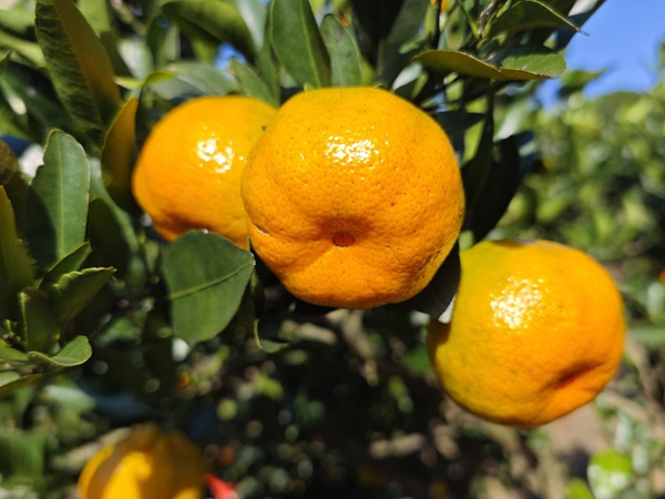 今年,池坪村的柑橘迎来大丰收,高品质果实产量预计可达150万斤以上。其中,试点品改的血橙、锦蜜各30亩,精品“早蜜1号”250亩。池坪村独特的自然条件孕育出的“早蜜椪柑”具有“成熟早、糖度高、口感脆甜”的显著优势——每年11月初即可上市,比普通椪柑早15-20天,糖度却比普通椪柑更高,果肉细腻无渣,深受消费者喜爱,成为当地农民增收致富的“黄金果”。
