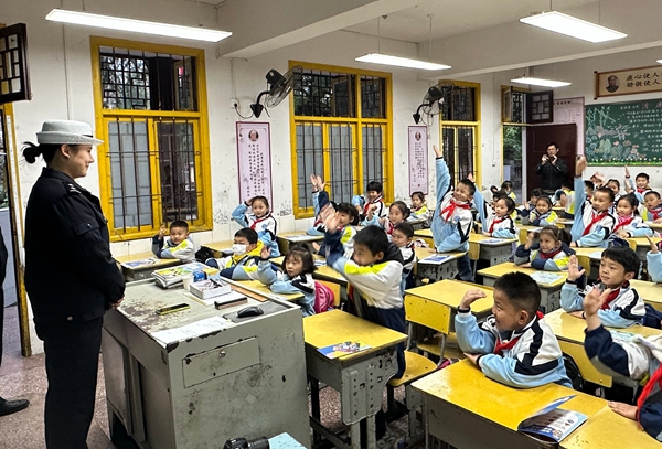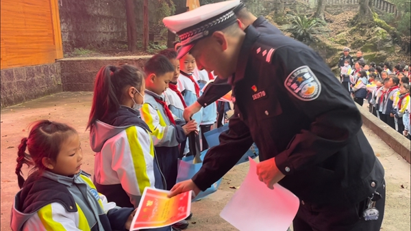 颁奖仪式后,民辅警结合学校周边道路交通特点,用通俗易懂的语言讲解步行、乘车等安全知识,重点强调“一盔一带保安全”“过马路一看二慢三通过”等核心知识。通过趣味问答等互动形式,让学生们在欢声笑语中熟练掌握交通安全常识。同时,民辅警还鼓励同学们争做“小小交通安全宣传员”,以“小手拉大手”的形式,把安全知识带回家,形成“教育一个学生、影响一个家庭、辐射整个社会”的文明交通连锁效应。
