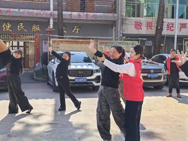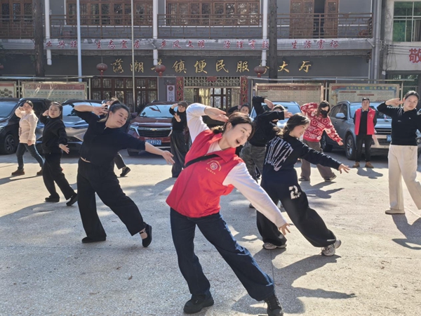 在落潮井镇,舞蹈老师编排的舞蹈《一起来跳新疆舞》,结合当地苗族特色,分别从文化根源、功能属性、动作体系、审美取向等方面对新疆舞蹈做细致的风格拆解,使学员对不同民族之间舞蹈有更深的理解,让各民族的优秀文化之花在苗乡大地持续绽放。
