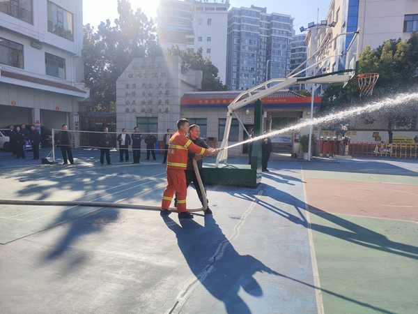 培训中,大队培训人员立足公安派出所消防安全工作的实际,从《中华人民共和国消防法》、《消防监督检查规定》等法律法规入手,采取典型火灾案例分析的方式,详细阐述了公安派出所民警消防监督工作的职责。随后,重点就公安派出所消防监督检查的范围、形式和内容三个方面进行了详细的培训,其中针对“多合一”场所;电器线路、燃气管路使用情况;防火检查、巡查情况;疏散通道、安全出口、防火分区、消防车通道、防火间距以及对消防设施、器材的检查等进行着重讲解。会后,大队培训人组织参会人员进行了消火栓出水实操演练。