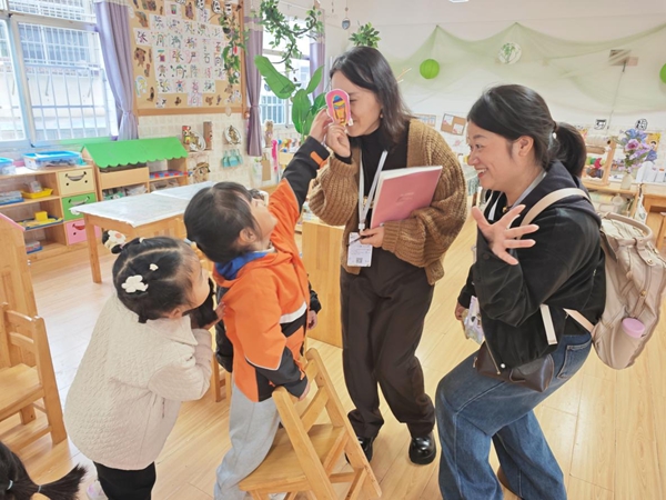 10月30日上午,参训教师以“定点跟班”形式沉浸式观摩,全程跟踪班级晨间活动、环境创设、户外自主游戏及集体教学,深入把握幼儿探索行为与教师支持策略,积累鲜活实践经验。当日下午,浙江安吉幼儿园园长张海雯线上开展《游戏思维共享活动的实践与探索》讲座,围绕思维共享活动与幼儿前期经验衔接、教师价值判断所需经验、支持策略具体运用三大要点,以理论结合案例的方式,为教师提供清晰指引。