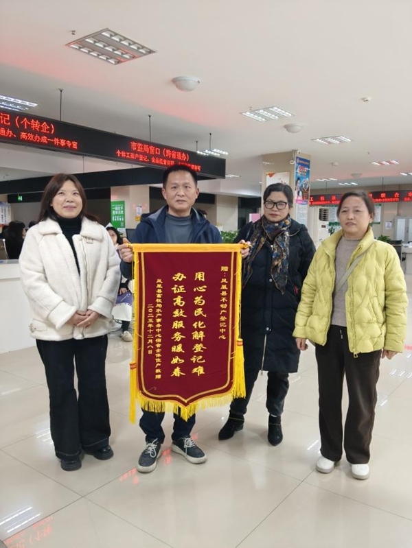 凤凰新闻网12月18日讯(通讯员 闵敏)12月16日上午,一面印着“用心为民化解登记难 办证高效服务暖如春”的锦旗送到凤凰县政务服务中心不动产登记中心窗口,这面锦旗,代表凤凰县畜牧中心宿舍住户向政务服务中心不动产登记中心窗口工作人员表达的诚挚谢意,是群众对政务服务工作的肯定,更是政务服务中心践行便民利民宗旨的生动体现。