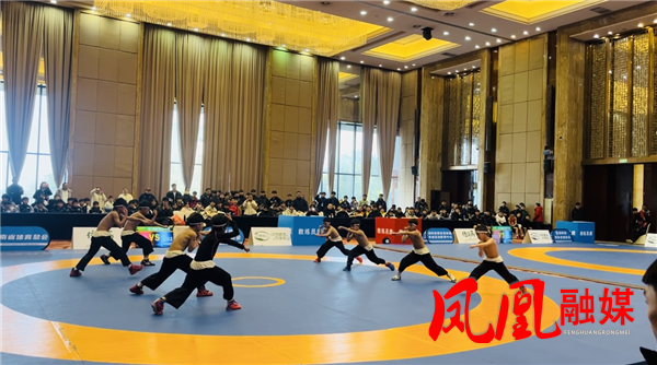 集体赛环节,由教练石矾精心创编的团体操《苗跤战魂》震撼登场!队员们身着刺绣点缀、简约大气的苗族特色服饰,踏着鼓点稳步集结成阵,动作随声而动、整齐划一。他们将苗拳的刚劲迅猛与摔跤的灵动巧变完美交融,时而弓步稳扎、拳脚生风,时而腾挪闪避、顺势借力,在一次次摔倒后即刻奋起、逆势反击的拼搏中,淋漓尽致展现出苗族儿女骨子里的坚韧不屈与热血豪情。这份兼具民俗底蕴与竞技张力的表演,深深打动现场评委与观众,最终无悬念摘得小学组团体操桂冠,让苗乡摔跤文化在省级舞台绽放耀眼光芒。